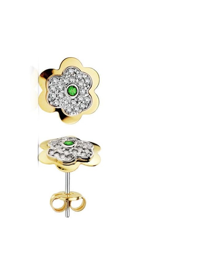 Pendientes Mujer en Oro de 18kt Flor con Esmeralda y Circonitas 6mm
