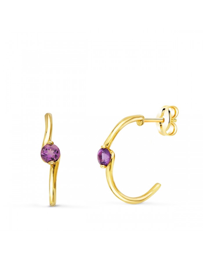 Pendientes "Tavira" Aro Liso con Amatista en Oro de 18Kt -15 x 3mm