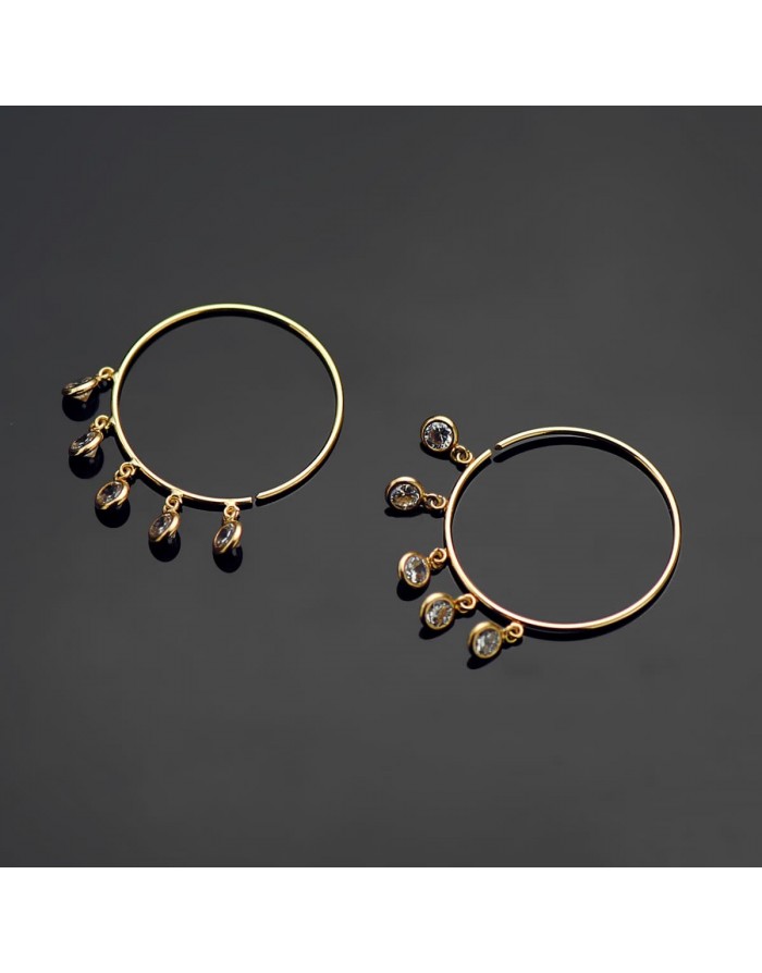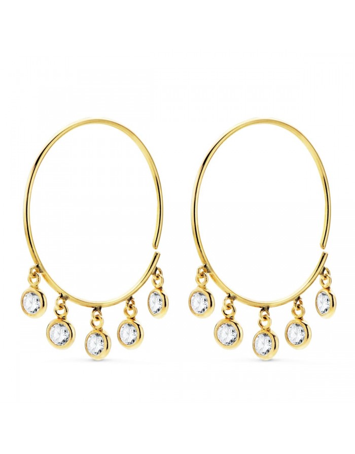 Pendientes "Galante" Aro de 20mm con Circonitas Blancas colgantes en Oro de 18Kt