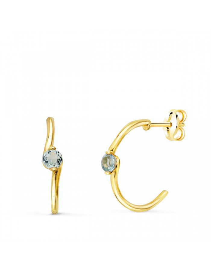 Pendientes "Tavira" Aro Liso con Aguamarina en Oro de 18Kt -15 x 3mm