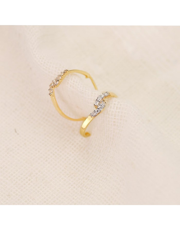 Pendientes hechos con Oro Amarillo 18K y con acabado en bicolor de la marca Joyas Armaan con cierre a presión. La piedra del pendiente es circonitas de color Transparentes.