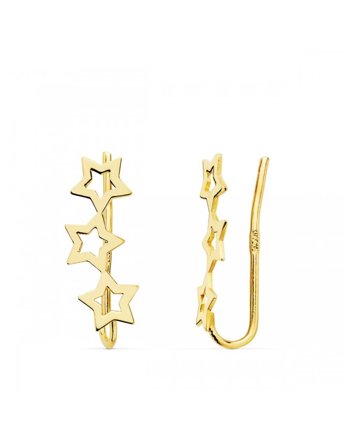 Pendientes Trepadores en Oro de 18Kt Estrellas -15 x 5mm