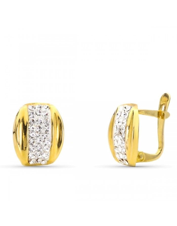 Pendientes Bandas Oro Circonitas Cierre Omega -11 x 10mm