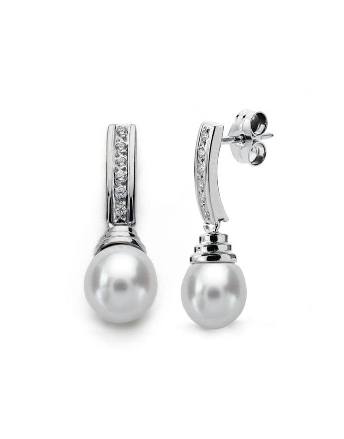 Pendientes Perla y Circontas en Oro Blanco de 9KT