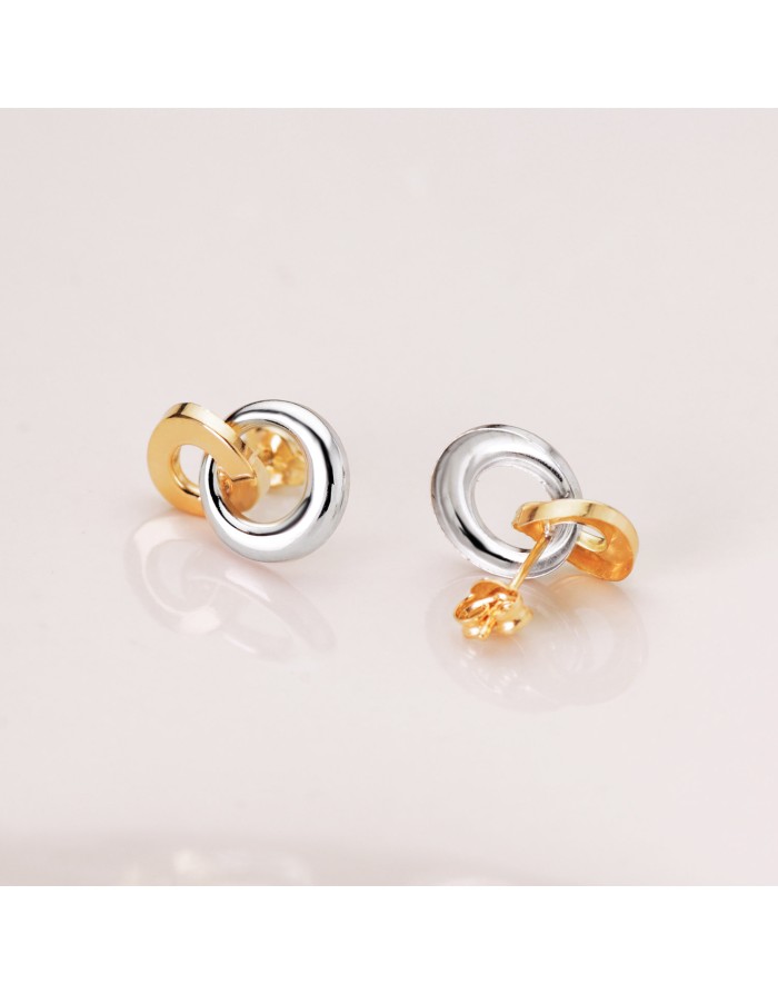 Pendientes Aro Doble Bicolor en Brillo 18KT