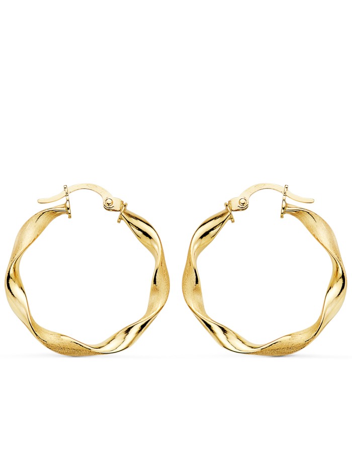 Pendientes Aros Retorcidos Oro 18KT Mate y Brillo -24 x 2.5mm