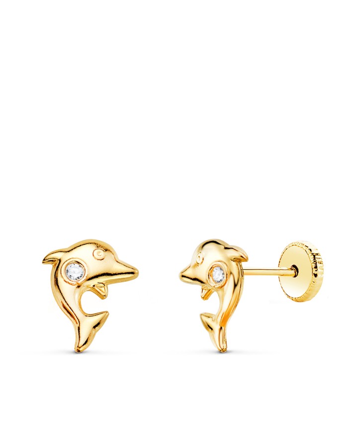 Pendientes Niña Delfines Brillo Oro 18KT -Circonita