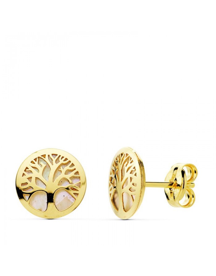 Pendientes Árbol De La Vida Base de Nácar Oro 18KT -9mm