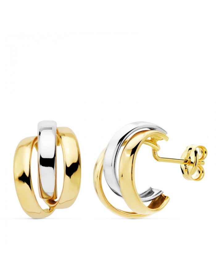 Pendientes de forma cinco círculos, fabricados en Oro Amarillo 18KT con un acabado a presión, para mujer, ideales para uso diario. Estos elegantes pendientes destacan por su diseño minimalista y geométrico, con un cierre de presión que ofrece una comodidad excepcional durante el uso. Su fabricación en oro de alta calidad los convierte en una opción duradera y de gran valor.