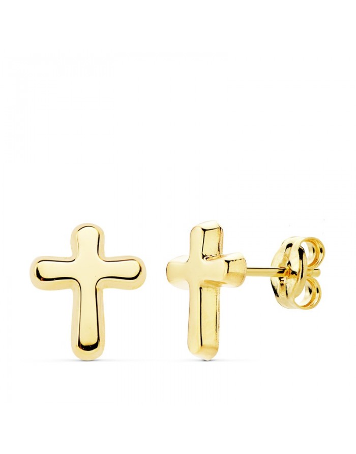 Estos pendientes de Oro Amarillo 18KT tienen una forma de Cruz elegante y minimalista. Su diseño sencillo y pulido les confiere un aspecto refinado y versátil, haciéndolos ideales tanto para el uso diario como para ocasiones más formales. Con un cierre a presión, estos pendientes ofrecen comodidad y seguridad.