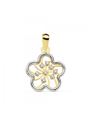 Pendientes Babba Flor calada en Oro Amarillo y Blanco de 18Kt -8mm