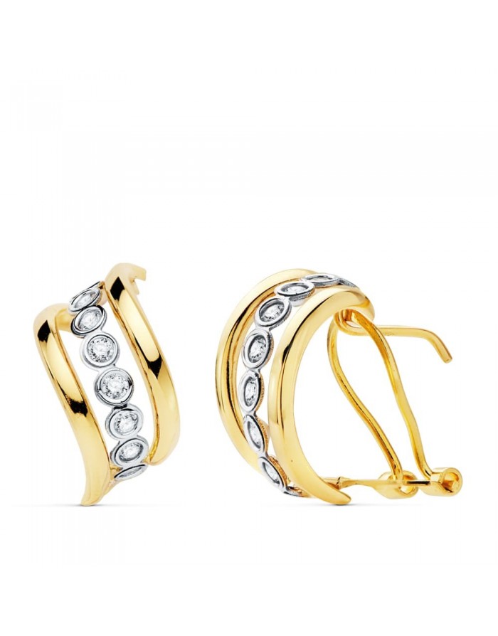 Pendientes Damala Bicolor y Cierre Omega en Oro de 18Kt -17 x 8mm