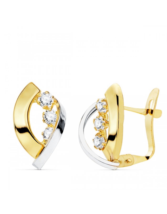 Pendientes Bicolor Bandas con Circonitas en Oro de 18Kt -14 x 9mm