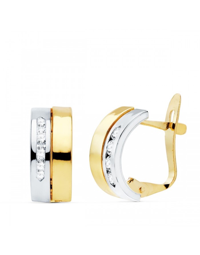 Pendientes Bicolor en Oro de 18Kt Doble Banda con Circonitas -12 x 5mm