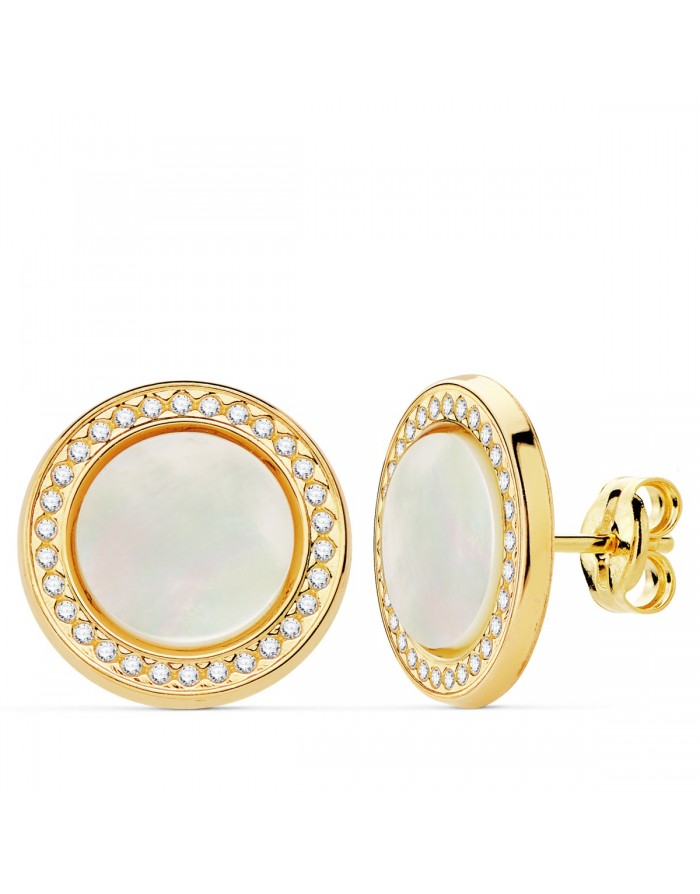Pendientes redondos de Oro 18kt con nácar y circonitas