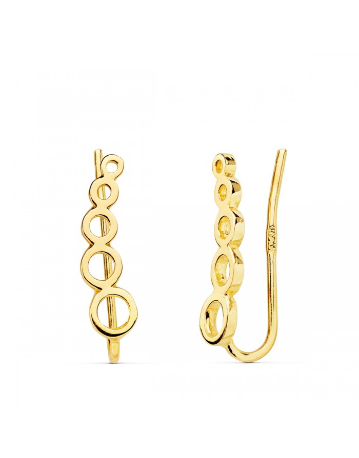 Pendientes trepadores con círculos en Oro de 18 Kt