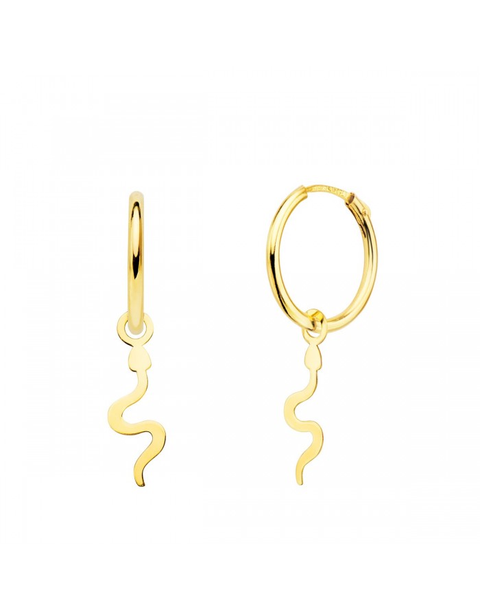 Pendientes Aro en Oro de 18Kt con charm de Serpiente