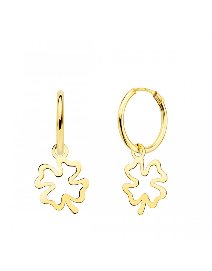 Pendientes Aro en Oro de 18kt con charm de Trébol