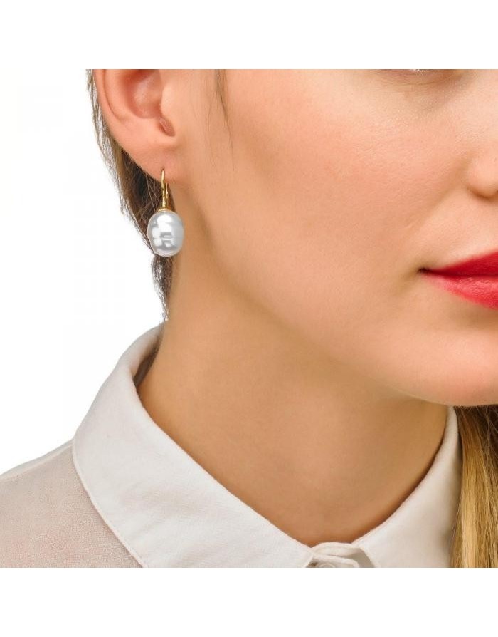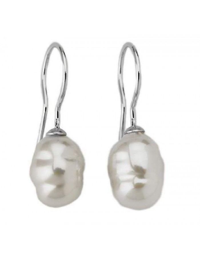Pendientes de perlas hechos con Plata de ley de la marca Majorica con cierre de gancho. Esta joya está hecha con perla barroca de color blanco y un diámetro de 8 mm.
