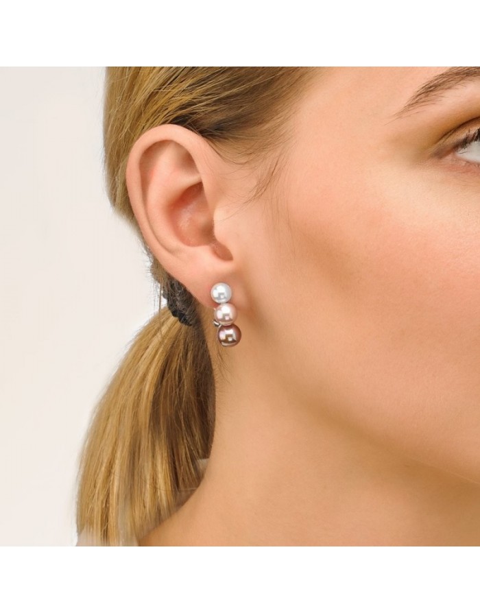Pendientes de perlas hechos con Plata de ley de la marca Majorica con cierre omega. Esta joya está hecha con perla redonda de color blanco, gris y negro tahití y un diámetro de 7,8 y 9 mm.