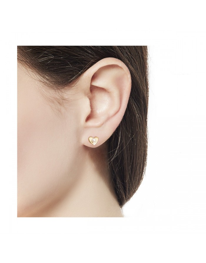 Pendientes dorado botón mini corazón con perla