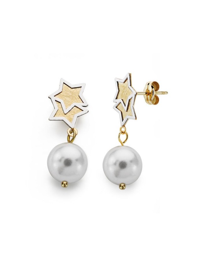 Pendientes Perla con Estrellas en Oro de 18KT -25 X 8mm
