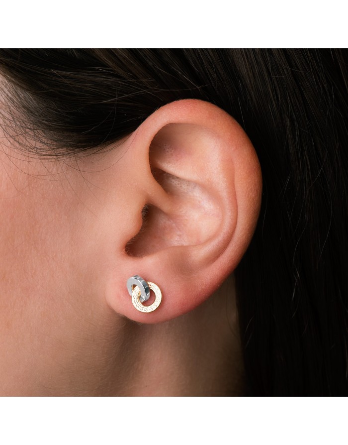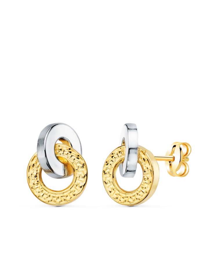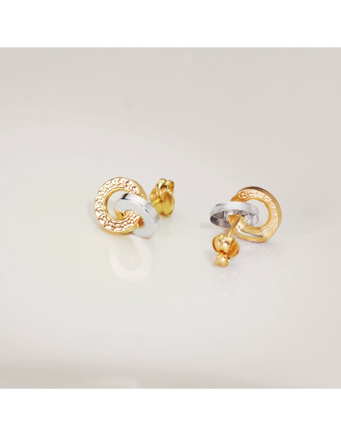 Pendientes Aros Greca Bicolor en Oro 18KT -10 x 7mm