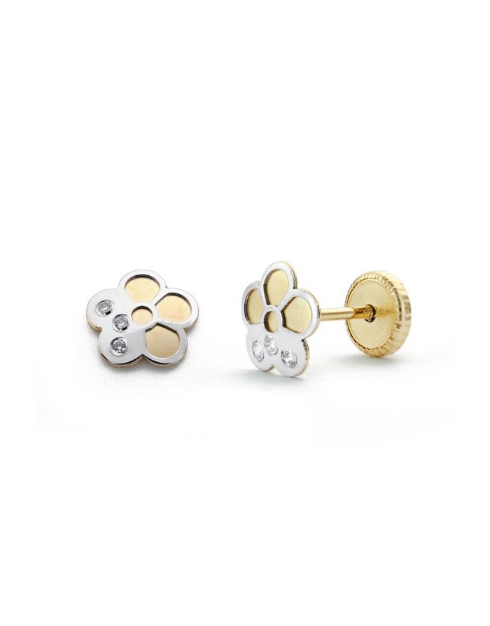 Pendientes Bebé en Oro Bicolor 18Kt forma de Flor -6mm