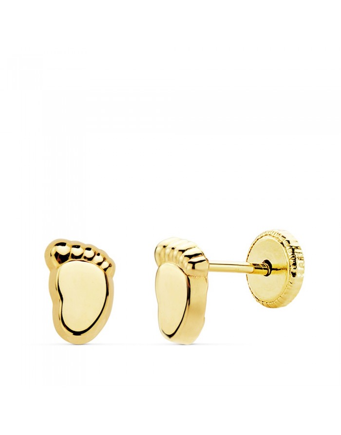 Pendientes para bebé forma de pié en Oro de 18Kt lisos