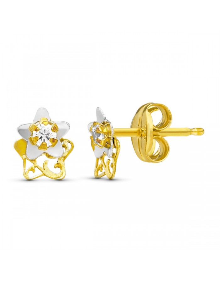 Pendientes Niña Estrellas Caladas en Oro Blanco y Oro Amarillo de 18kt -6 x 5mm