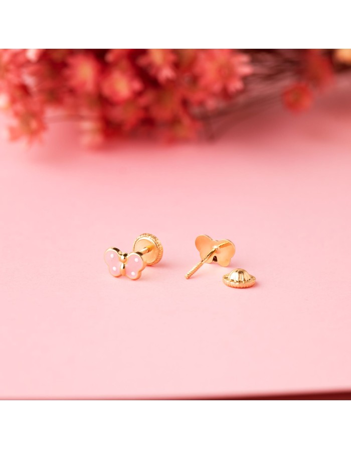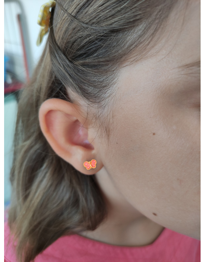 Pendientes Niña Mariposa Esmaltada Rosa de Oro 18KT -7mm