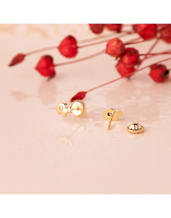 Pendientes hechos de Oro Amarillo 18KT de la marca Joyas Armaan con cierre de rosca. La piedra del pendiente es circonita de color .