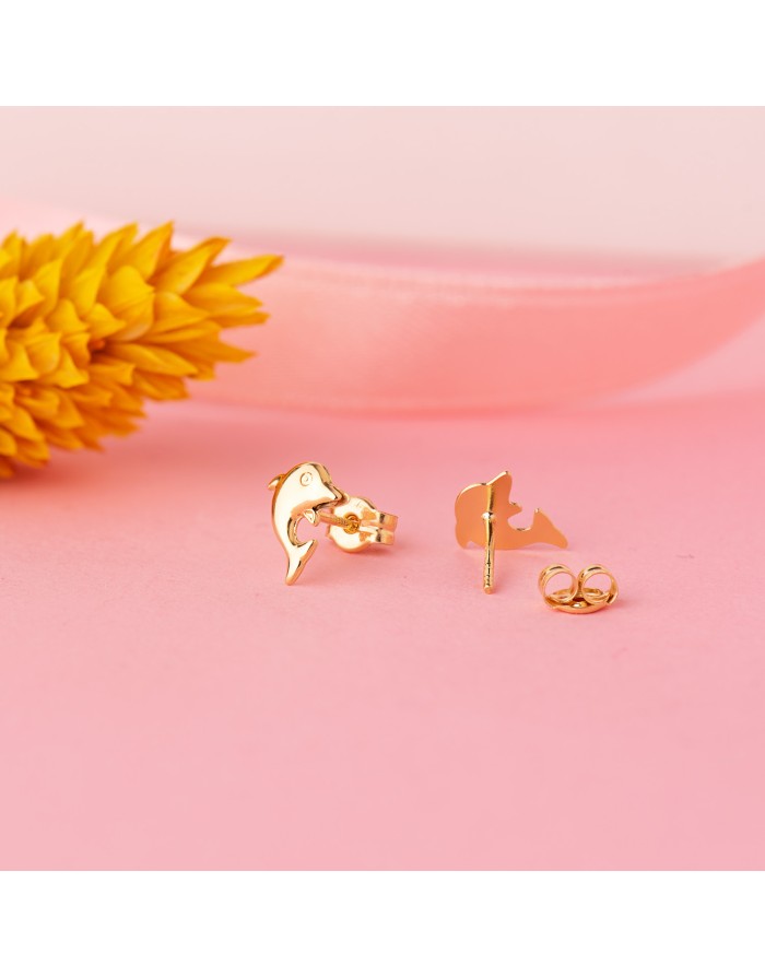 Pendientes Niña Delfines Brillo Oro Amarillo 18KT