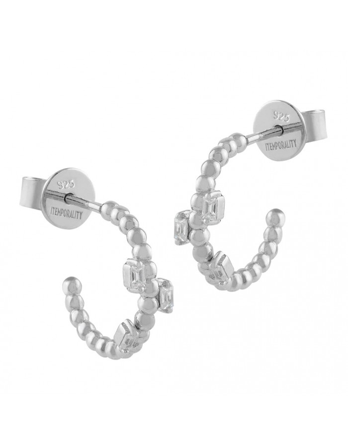 Pendientes en forma de Aro hechos de Plata con baño de Rodio True Frost de la marca Itemporality con cierre a presión.