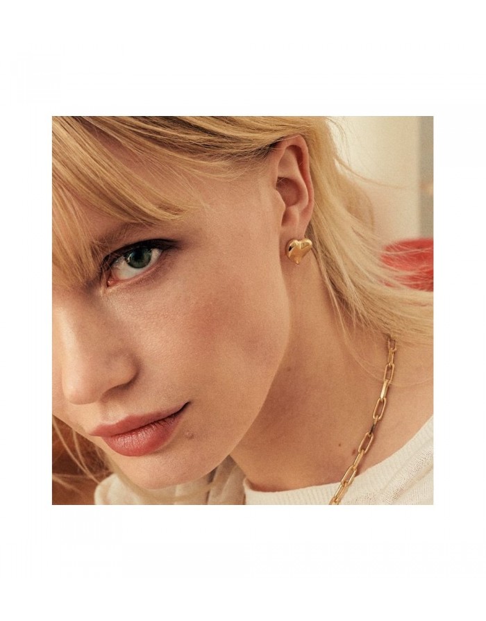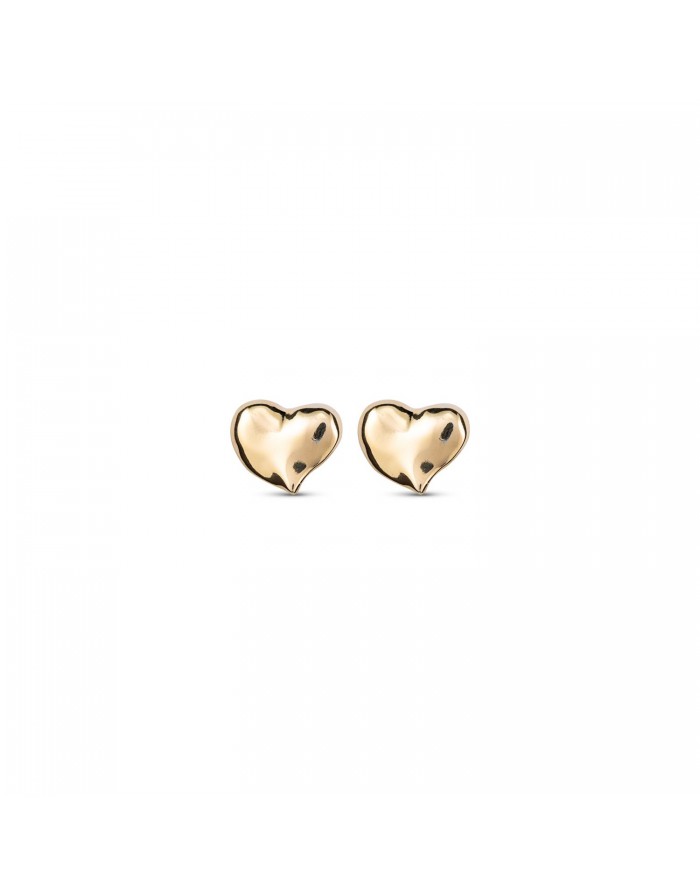 Pendientes en forma de Corazón hechos con metal con baño de oro de la marca UNOde50 con cierre a presión. Miden 1,2 cm x 1,2 cm. y tienen un peso de 6 grs.