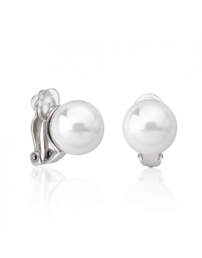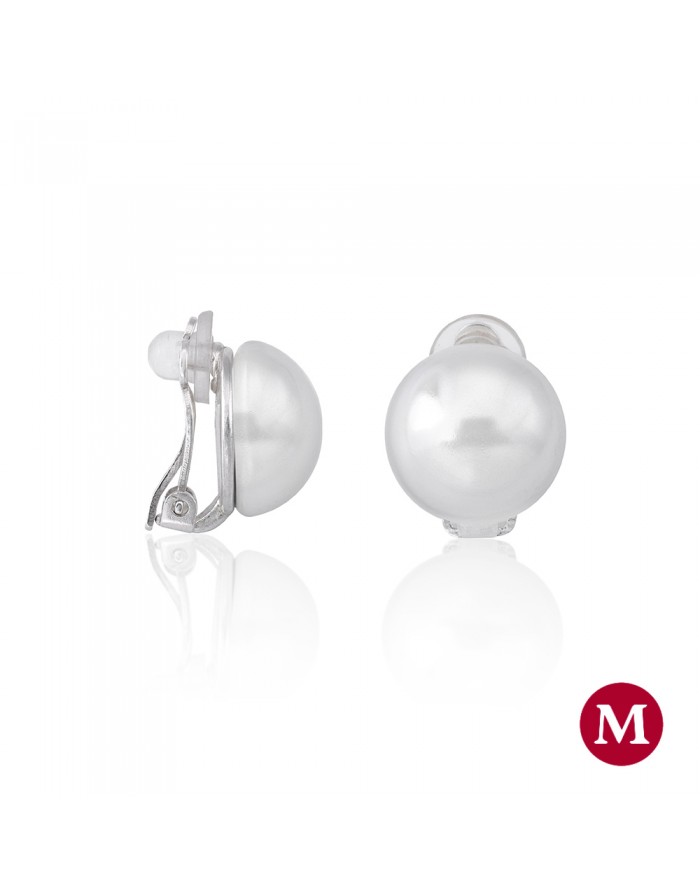 Pendientes de perlas hechos de Plata de 1ª Ley de la marca Majorica con cierre omega. Esta joya está hecha con perla mabé de color blanco y un diámetro de 14 mm.