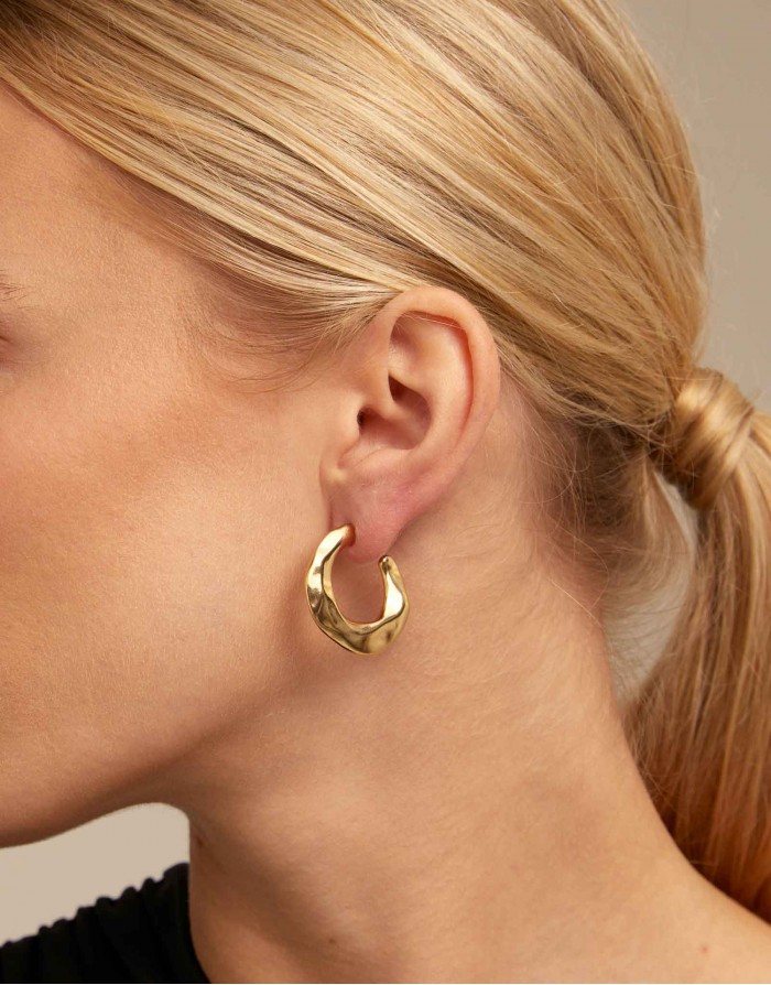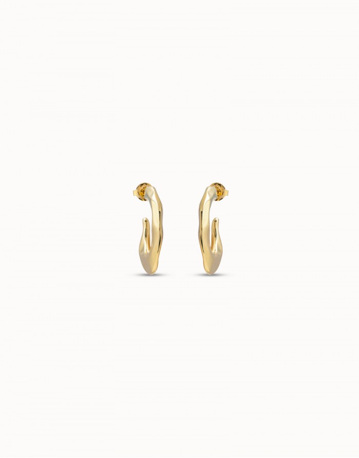 Pendientes en forma de Aro hechos con metal con baño de oro de la marca UNOde50 con cierre a presión.
