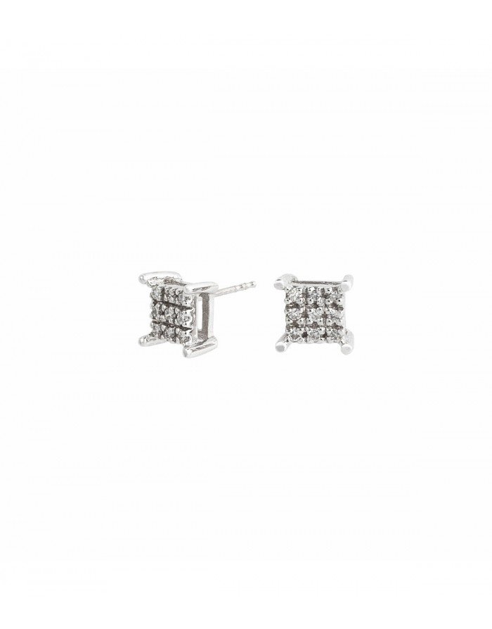 Pendientes Oro Blanco 18KT cuadrado con Diamantes