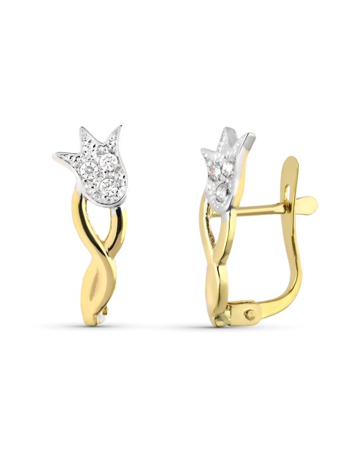 Pendientes Tulp en Oro de 9KT Bicolor y Cierre Catalán