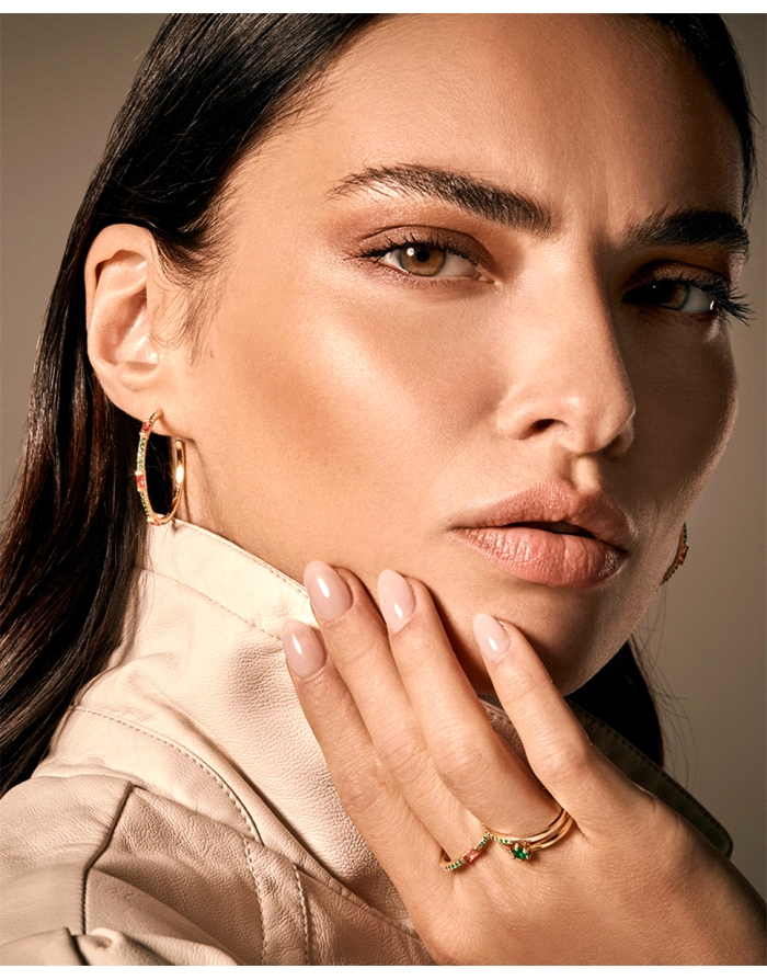 Pendientes Elegant de plata de ley con baño de oro y circonitas de color rosas y verdes