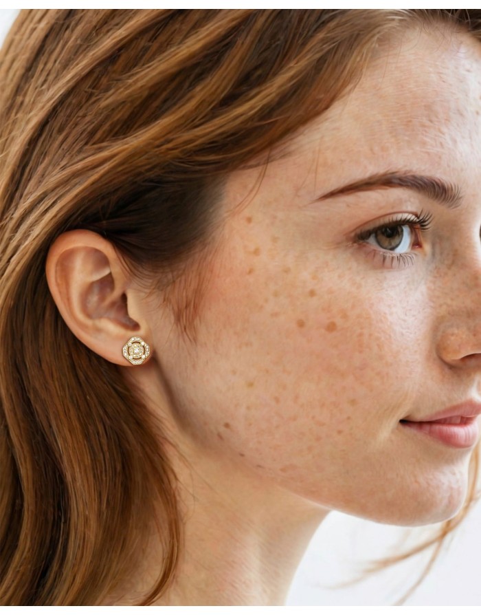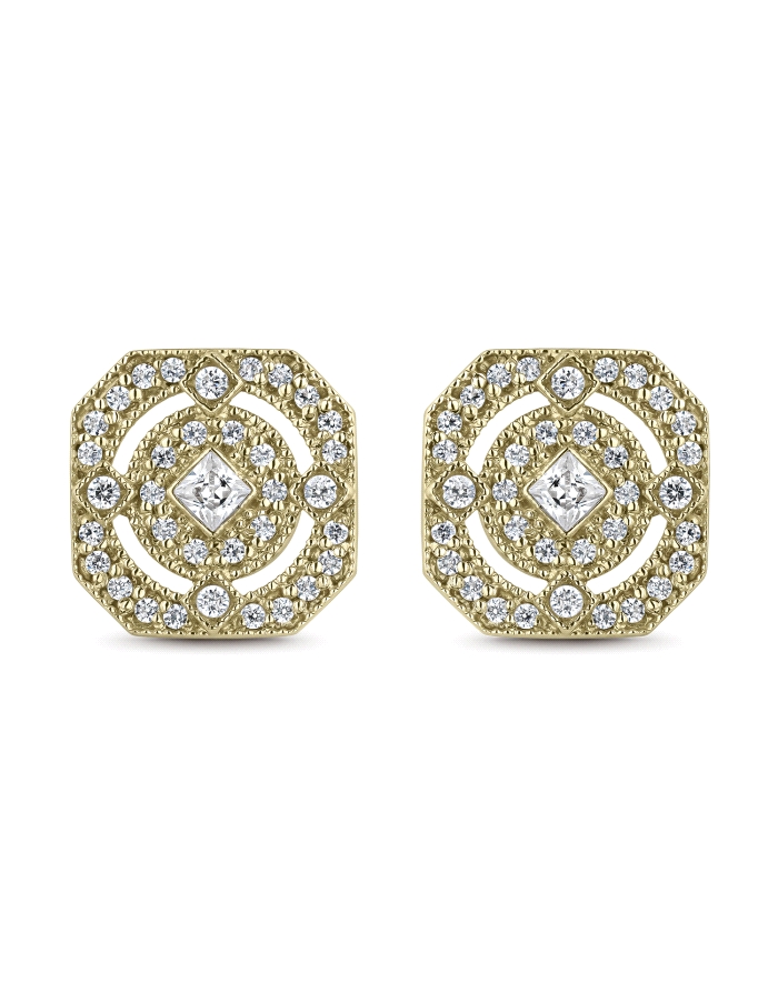 Pendientes Vintage Octagonal Circonitas de Oro 18KT