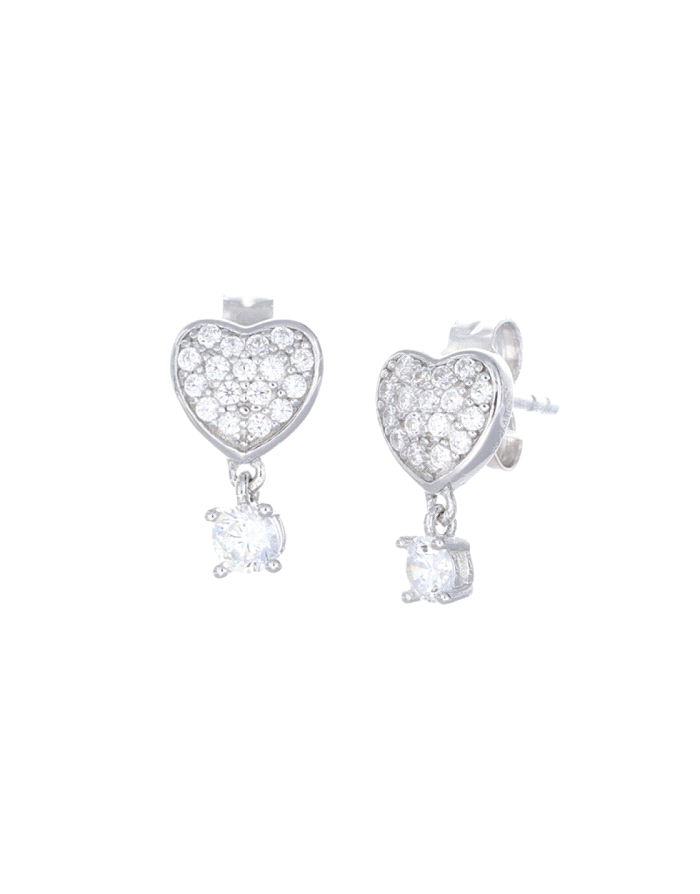 Pendientes de Plata Rodiada con Forma de Corazon y Circonitas