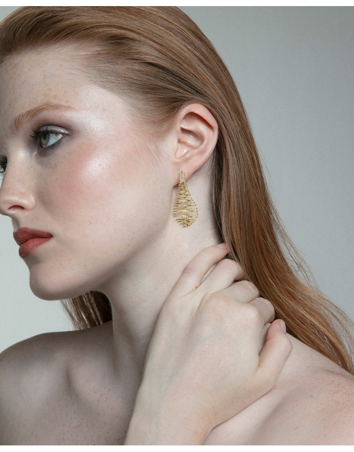 Pendientes de plata de primera ley con baño de oro forma de hoja