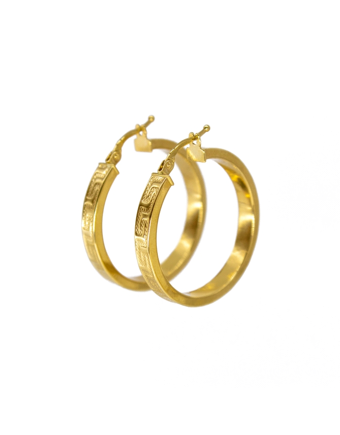 Pendientes hechos de Oro Amarillo 18KT y con acabado en Brillo-Pulido de la marca Ishy Bijoux con cierre Italiano.