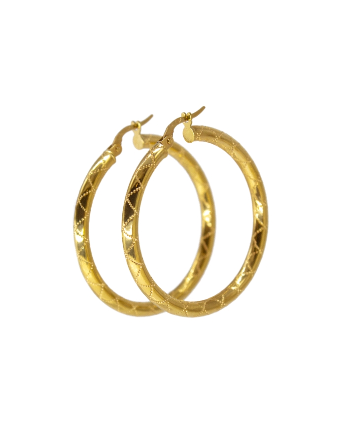 Pendientes hechos de Oro Amarillo 18KT y con acabado en Brillo-Pulido de la marca Ishy Bijoux con cierre Italiano.