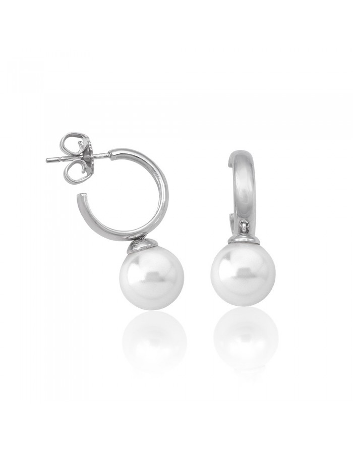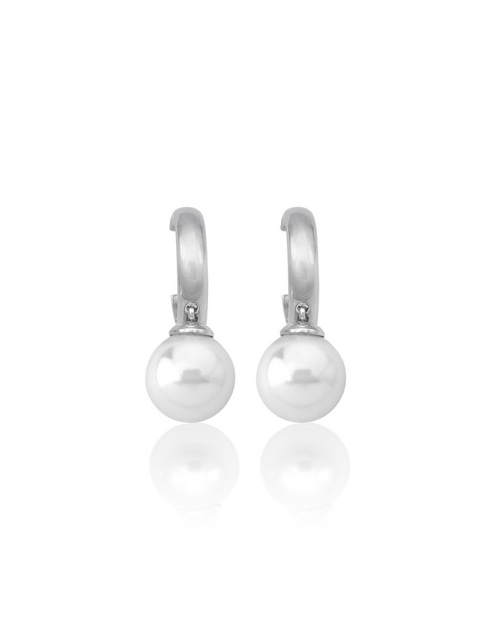 Pendientes de perlas hechos con Plata de ley de la marca Majorica con cierre a presión. Esta joya está hecha con perla redonda de color blanco y un diámetro de 10 mm.