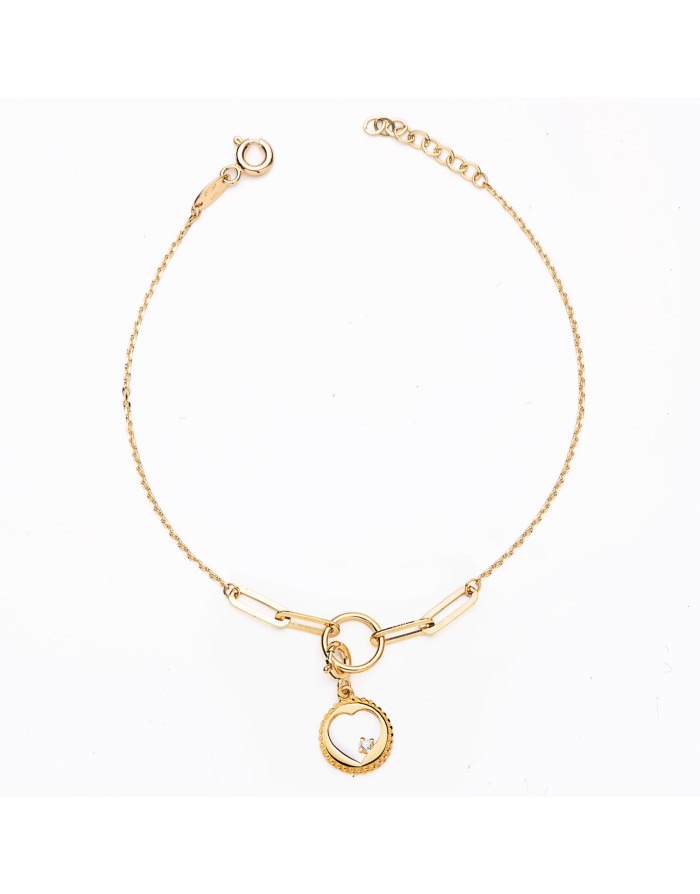 Pulsera Corazón Cadena Forzada en Oro de 18KT