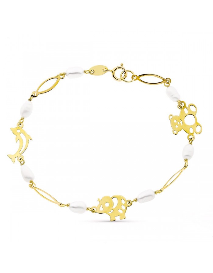 Pulsera Niña Isabella Oro Amarillo 9KT Perlas Animales -16cm