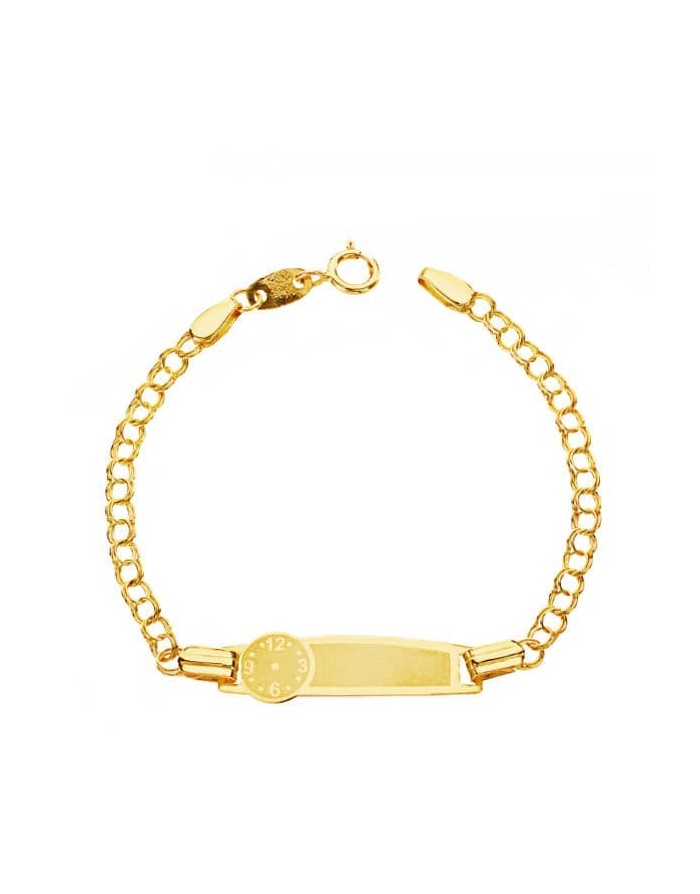 Esclava Bebé Placa con Reloj en Oro de 18Kt -13 cm