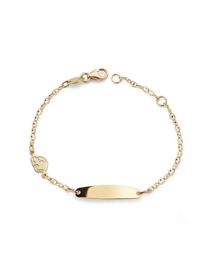 Esclava Bebé en Oro de 18Kt con Elefante y Cadena Ancla-14 cm